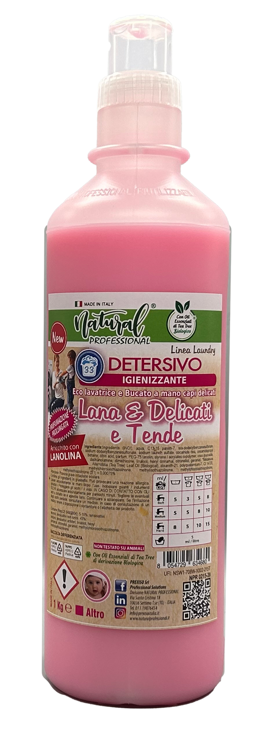 La speciale formula con lanolina favorisce una "naturale nutrizione" del tessuto, il PH neutro lo rende adatto a qualsiasi tipo di indumento delicato come il LINO, la SETA e il CASHMERE.